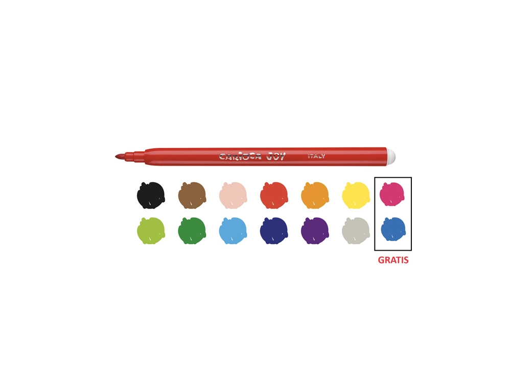 EAN: 8003511405335 Colección: Carioca Joy Tipo: Rotuladores Tipo de punta: Fina Envase: Cartón Estuche: 12 Fabricante: Carioca Materia: Rotuladores Escolares