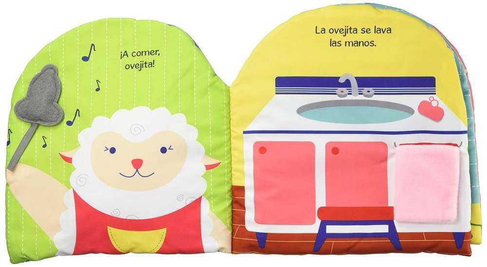 Es la hora de comer. La ovejita se lava las manos, se pone el babero, se instala en su trona…¡y come como los mayores! La colección de libros de tela de Auzou acompaña al bebé en sus actividades cotidianas y tiene un suave peluche con el que se puede jugar en cada página y un amigo ideal para el bebé. A la ovejita se le puede quitar y poner el babero.
