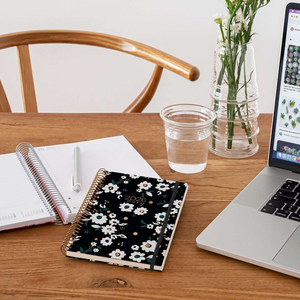 Personas que buscan una agenda con un estilo serio y moderno (negro) pero con un toque personal y natural (motivo garden).