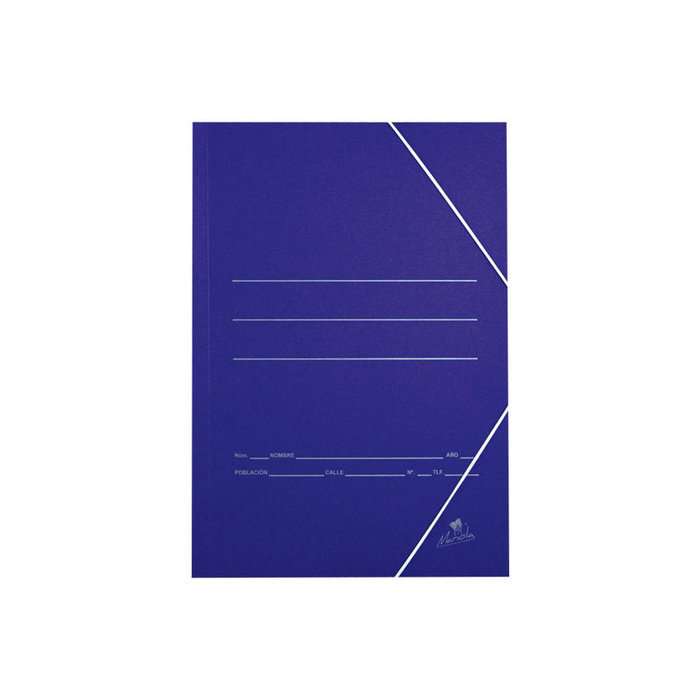 Equipada con tres solapas (inferior, lateral y superior) y un sistema de cierre con gomas elásticas, garantiza que los contenidos permanezcan bien sujetos, incluso al transportar la carpeta en bolsas, mochilas o carteras. Su diseño en color azul mate aporta un toque elegante y profesional, ideal para entornos educativos u oficinas.