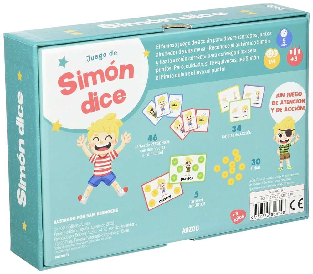 Juego Simón Dice de la editorial Auzou es una divertida propuesta para que los más pequeños desarrollen la atención, la memoria y la concentración mientras se divierten en grupo. Perfecto para jugar en familia o con amigos, este clásico juego invita a seguir las instrucciones… ¡pero solo cuando Simón lo dice!