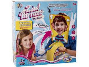 Juego Zas Tartazo, prepárate para reír a carcajadas. Este clásico juego familiar pone a prueba tus reflejos, tu suerte y tu sentido del humor. Coloca nata montada (o una esponja húmeda) en la mano lanzadora, gira la ruleta y mete la cabeza en el marco… ¡nunca sabrás cuándo llegará el tartazo sorpresa!