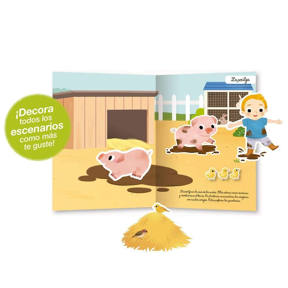 Cada página presenta escenarios interactivos en los que los niños pueden aprender sobre el entorno natural y las tareas del campo, fomentando la observación, la coordinación y la imaginación. Gracias a su formato práctico y resistente, es ideal para llevar de viaje o disfrutar en casa durante horas de entretenimiento creativo.