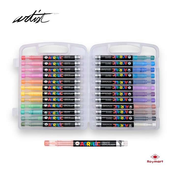24 rotuladores acrílicos en tonos intensos y de alta cobertura.