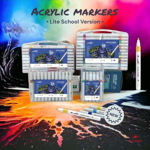 Descubre este completo maletín con 36 rotuladores acrílicos de alta calidad. Su tinta pigmentada ofrece una cobertura intensa y un acabado resistente, ideal para artistas, estudiantes y amantes de las manualidades.