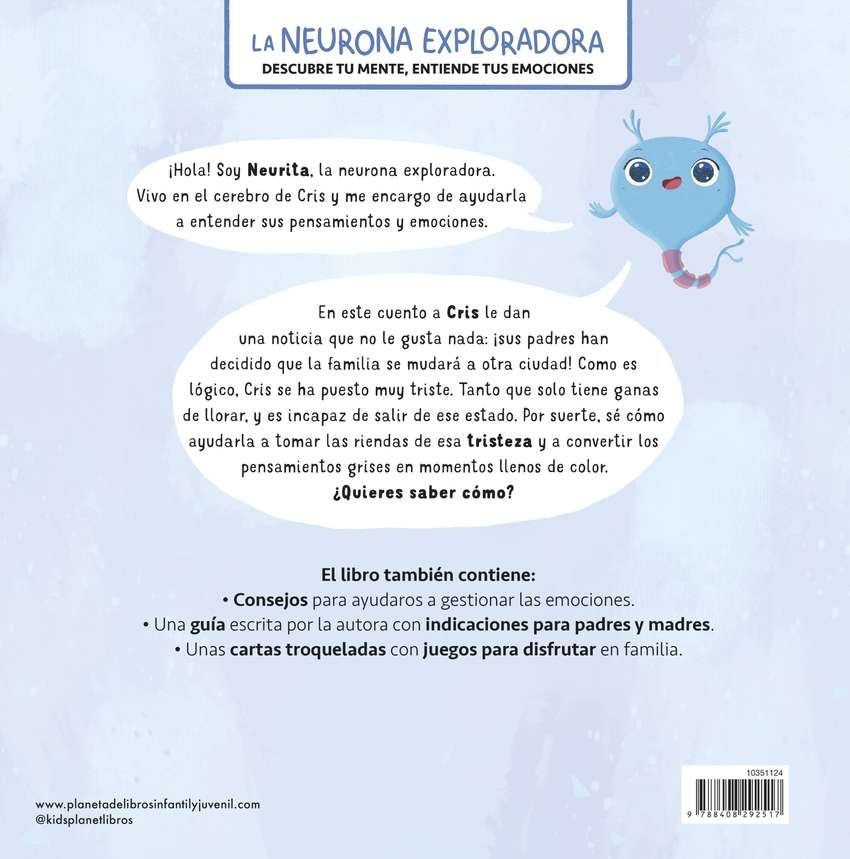 En este cuento a Cris le dan una noticia que no le gusta nada: ¡sus padres han decidido mudarse a otra ciudad! Como es lógico, se ha puesto muy triste. Tanto que solo tiene ganas de llorar, y es incapaz de salir de ese estado. Por suerte, sé cómo ayudarla a tomar las riendas de esa tristeza y a convertir los pensamientos grises en momentos llenos de color. ¿Quieres saber cómo?