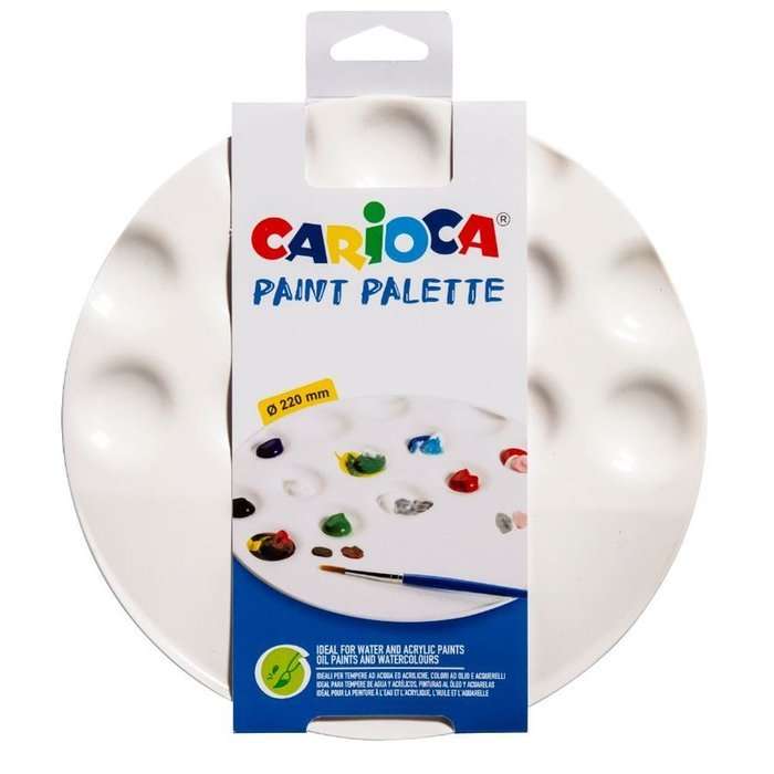 La paleta para pintura Carioca Paint Palette es el complemento perfecto para artistas, estudiantes y aficionados a las manualidades. Fabricada en plástico resistente y de alta calidad, esta paleta redonda tiene un diámetro de 220 mm, proporcionando el espacio ideal para mezclar colores de forma cómoda y ordenada. Su diseño incluye múltiples cavidades, ideales para organizar pinturas al agua, acrílicas, óleo o acuarelas, permitiendo mantener los tonos separados y facilitar el trabajo creativo.
