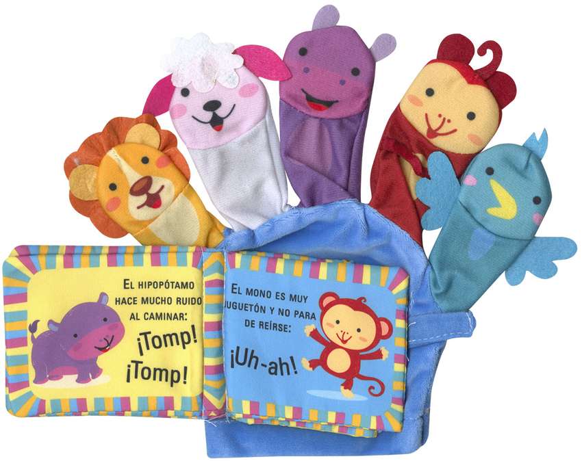 Con Sonidos de animales, cada página se convierte en una experiencia sensorial: un libro de tela acolchada, con cierre de velcro, que incluye una marioneta de mano con cinco personajes animales y divertidos sonidos escondidos en su interior.
