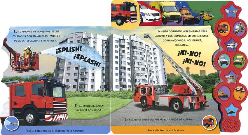 El libro incluye 10 sonidos diferentes para hacer la experiencia más envolvente: puedes oír sirenas, bocinas, frenadas, y más efectos propios de emergencias.