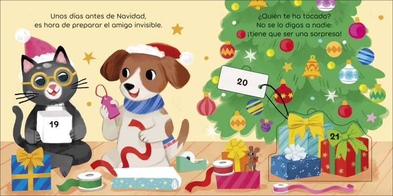 Hay muchas cosas divertidas para hacer en Navidad. Puedes envolver un regalo, comer deliciosas galletitas o decorar el árbol. Este libro de cartón con solapas es perfecto para leer con los más pequeños y disfrutar de esta maravillosa época del año, ya que ofrece ideas de actividades para hacer en familia. Las bonitas ilustraciones y las solapas llaman la atención de los niños. Los pequeños dedos podrán levantar ventanas, puertas y objetos para descubrir qué se esconde detrás, desarrollando su psicomotricidad fina y su curiosidad.
